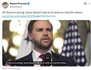The other article is “JD Vance is wrong: Jesus doesn’t ask us to rank our love for others” by Kat Armas for the National Catholic Reporter. Rather than reposting links to the articles from other accounts, as he did for most articles, Pope Leo posted the links from his own account.