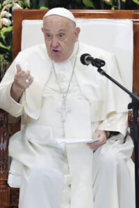 Pope Francis speaks at the Grha Pemuda Youth Centre in Jakarta, Indonesia, Wednesday, Sept. 4 2024.