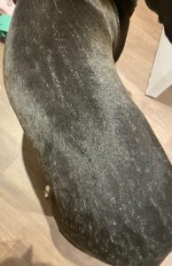 Below is the affect the air quality has had on her dog, it has left him “dry and scratchy”.