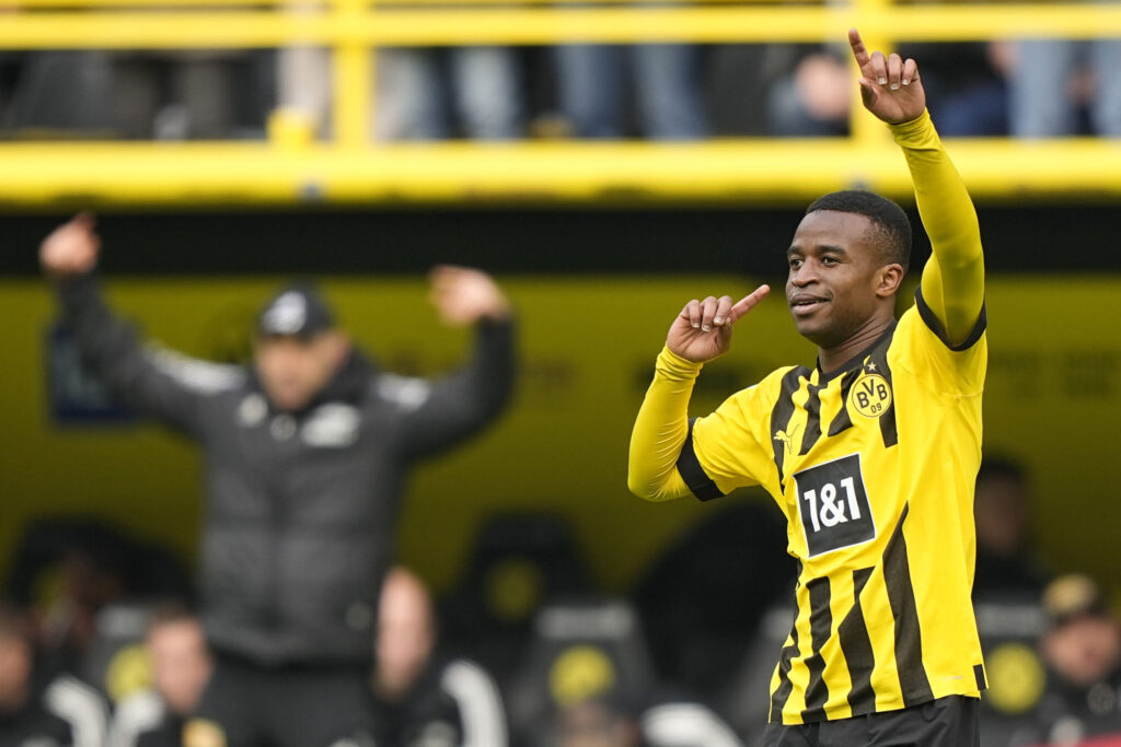 Youssoufa Moukoko during his record-breaking stint at Borussia Dortmund, Saturday, April 8, 2023. (AP Photo/Martin Meissner)