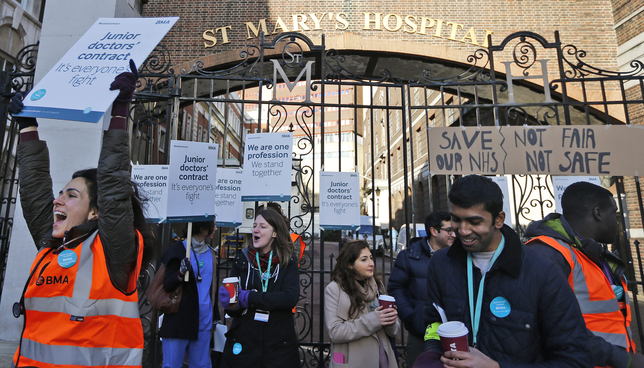 Protestors outside St Mary’s Hospital – (AP Photo/Frank Augstein)