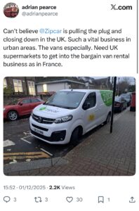 Elly Baker AM, Chair of the London Assembly’s Transport Committee, took to X to express her annoyance: “Losing @ZipcarUK would be a massive step backwards for London.”