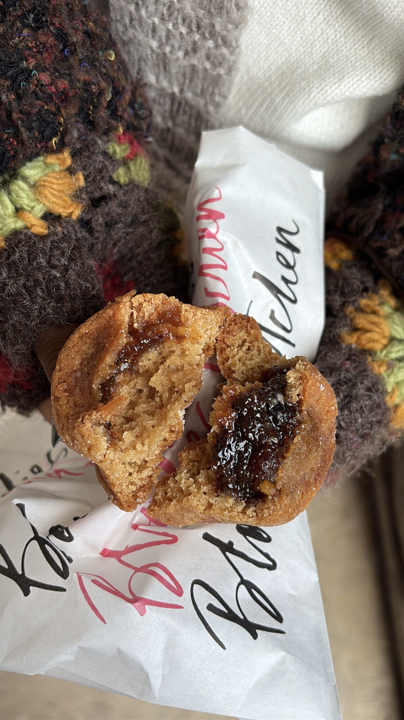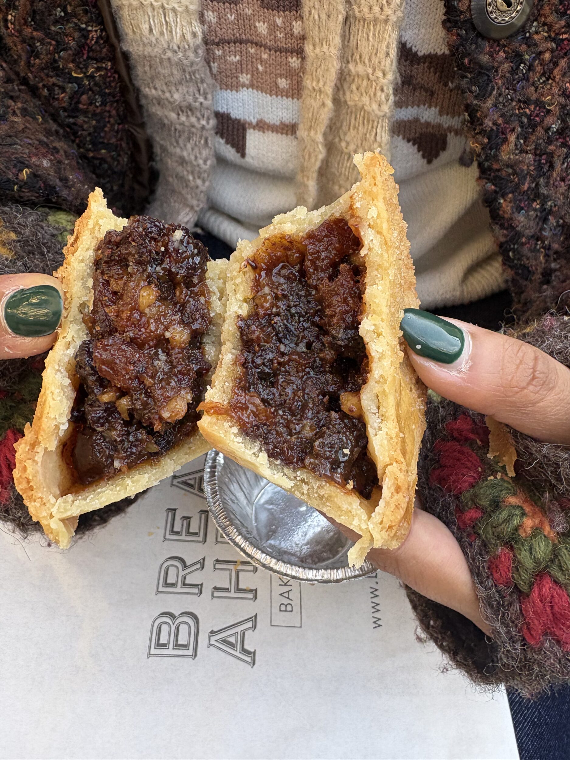 A mince pie broken in half from Bread Ahead.