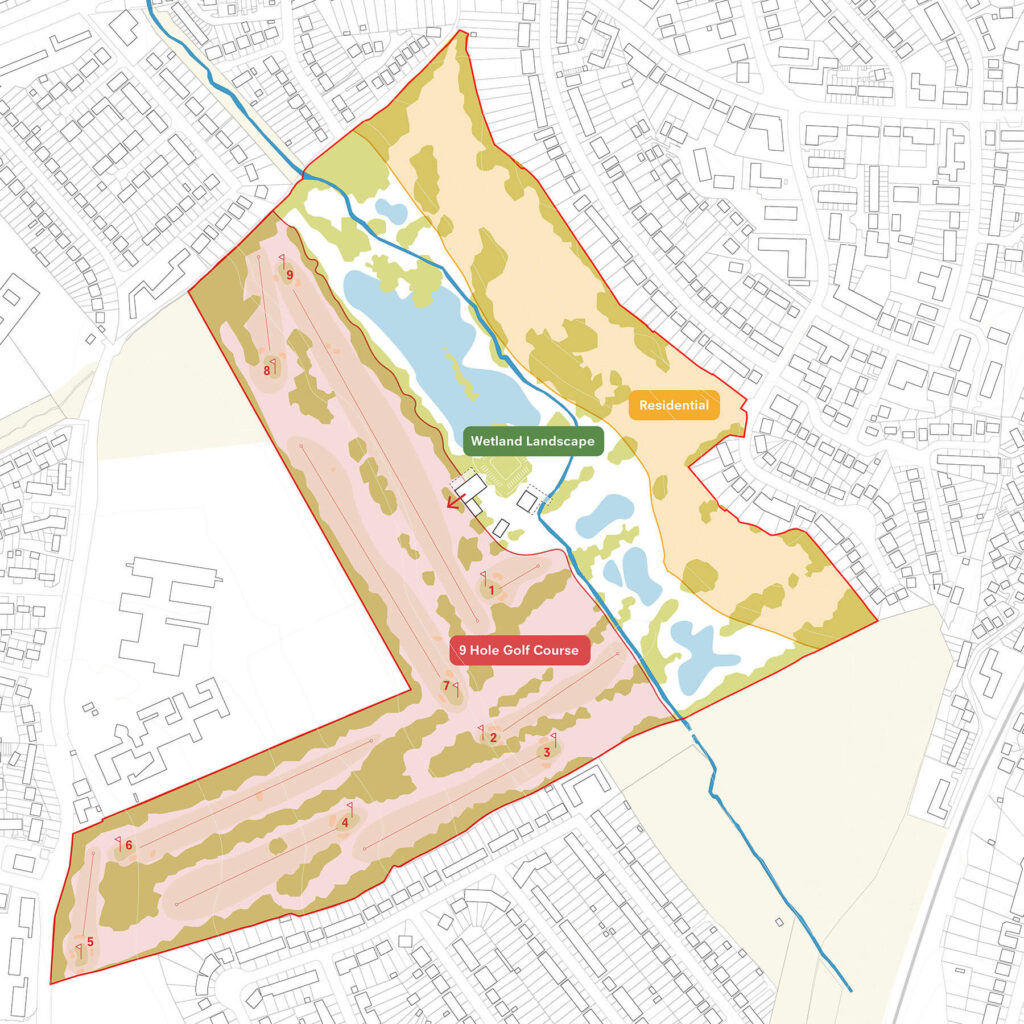 Holes to homes consists of a plan to turn the standard 18-hole golf courses into either a 9- or 12-hole course and use the remaining space to build housing ‘set within a green landscape’ that can be linked using social infrastructure such as new cycling and pedestrian routes.
