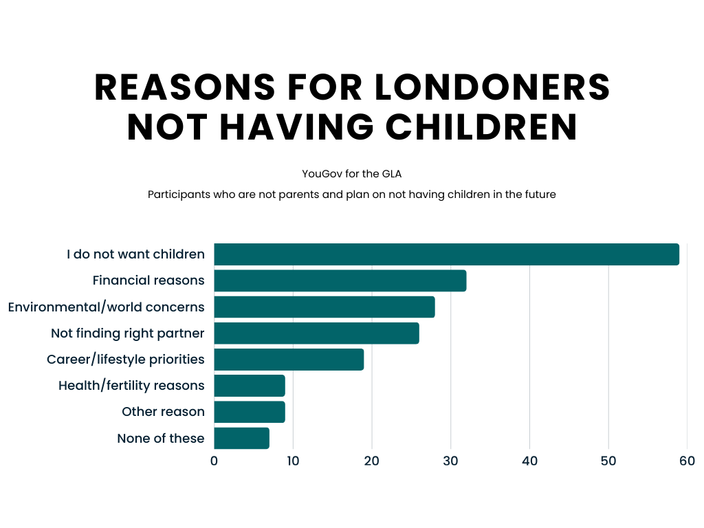 Reluctance to start a family in the capital could be based on many reasons says the GLA, be it financial, environmental, career priorities, or not finding the right partner.