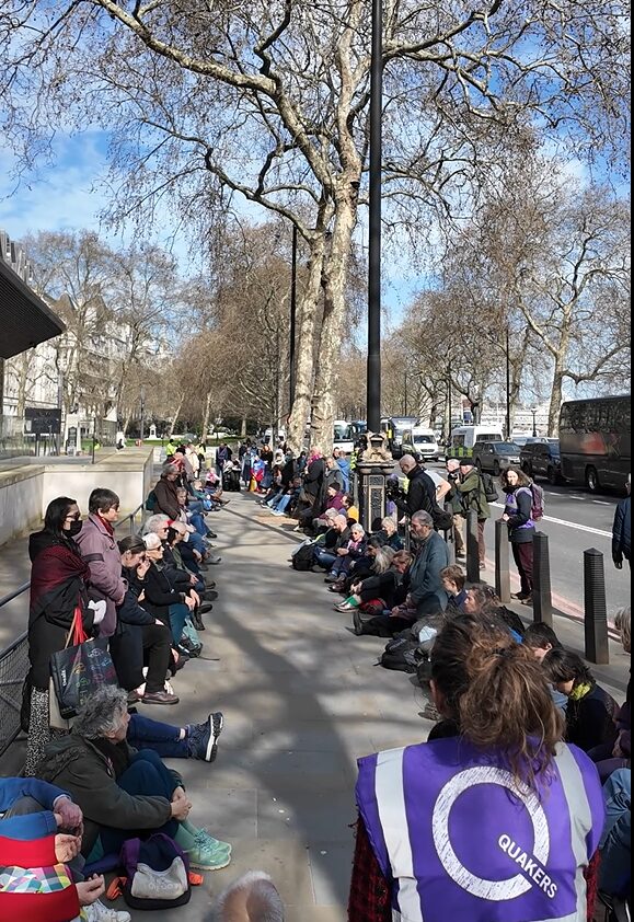 Quakers in Britain also took part in Tuesday’s lobby, holding a worship meeting outside New Scotland Yard after the Met raided Westminster Quaker Meeting House and made 15 arrests.