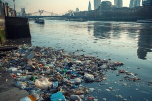 Pollution in the Thames, including visible litter, continues to threaten wildlife despite signs of recovery. (Credit: Adobe Stock)
