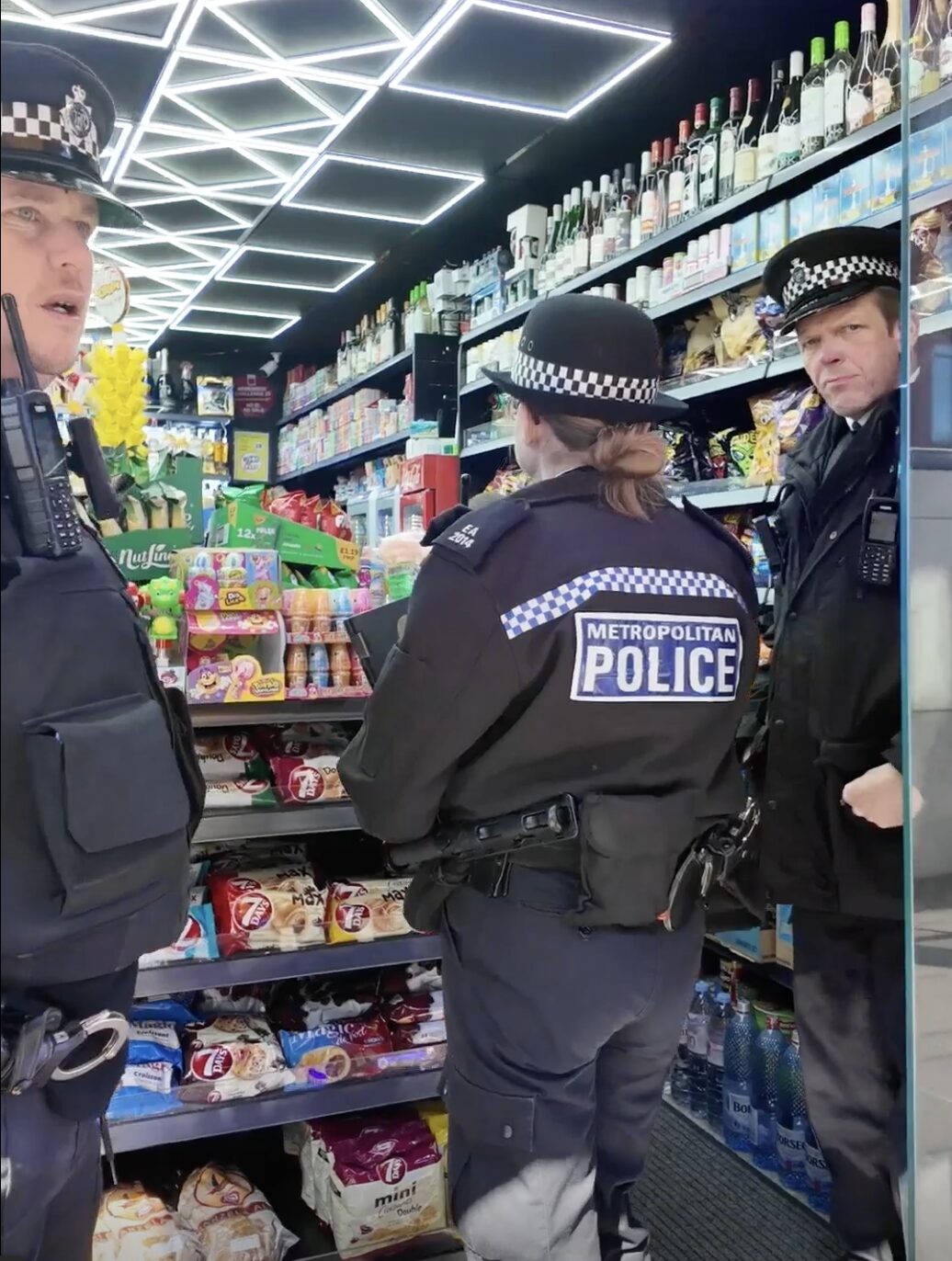 His behaviour quickly became confrontational. He began filming officers, particularly the one scanning products and searching back areas, and threatened to post the footage on TikTok.