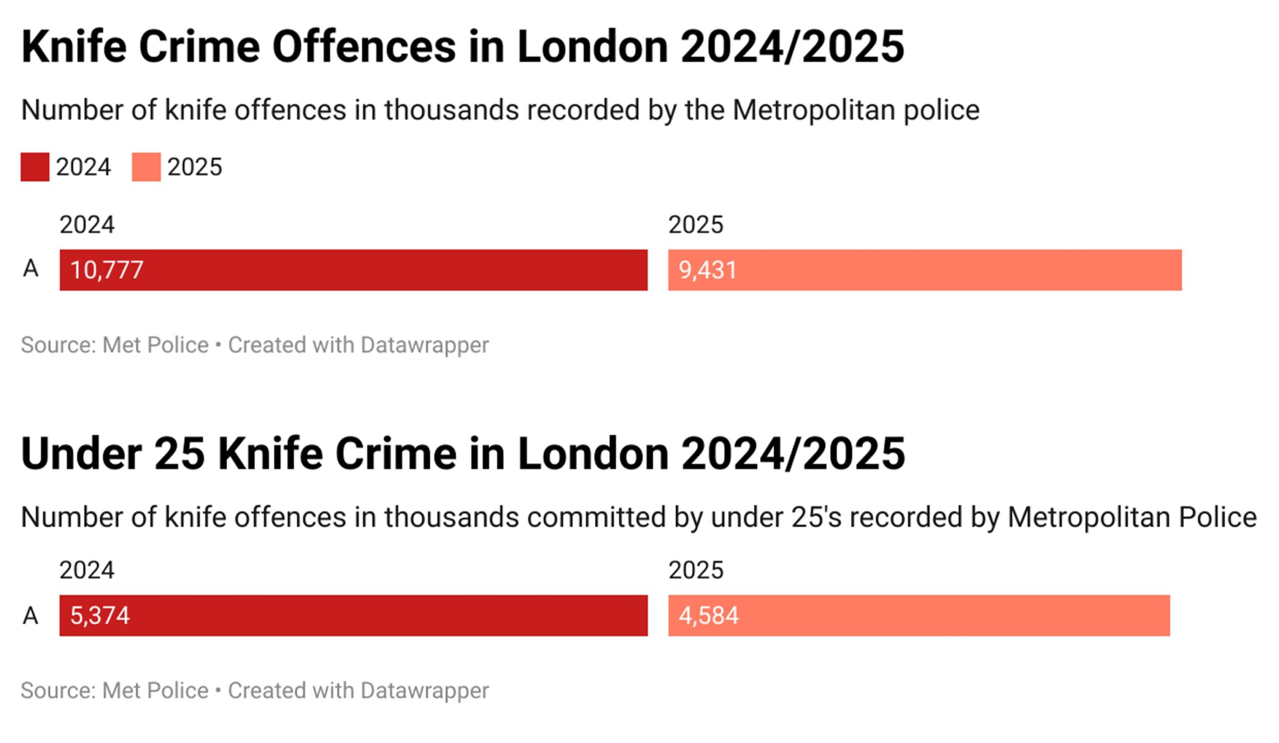 Compared to last year, London’s knife crime offences have dropped by 7% with the drop in the under 25 age bracket falling by closer to 15%.